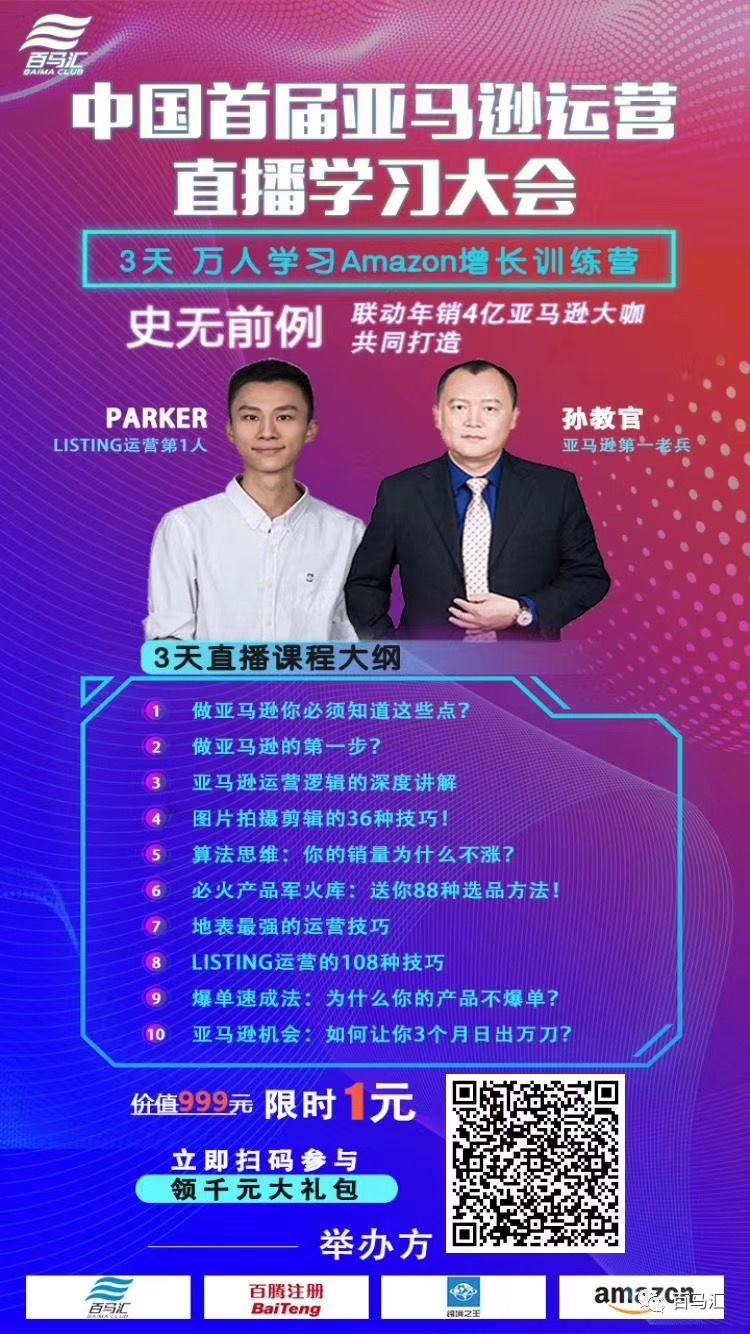 好消息,晚上7點(diǎn)半,孫教官將在直播間,為您詳細(xì)講解有關(guān)最新“亞馬遜停止入庫”問題的解決攻略。同時,更有最新A9算法、88種選品方法以及運(yùn)營干貨。想要報名的朋友,可以掃碼下方海報進(jìn)行報名吧!