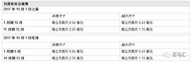 自 2017 年 10 月 1 日起,標(biāo)準(zhǔn)尺寸和超大尺寸商品 10 月的庫存容量月度費用將與 11 月和 12 月的倉儲費用保持一致。